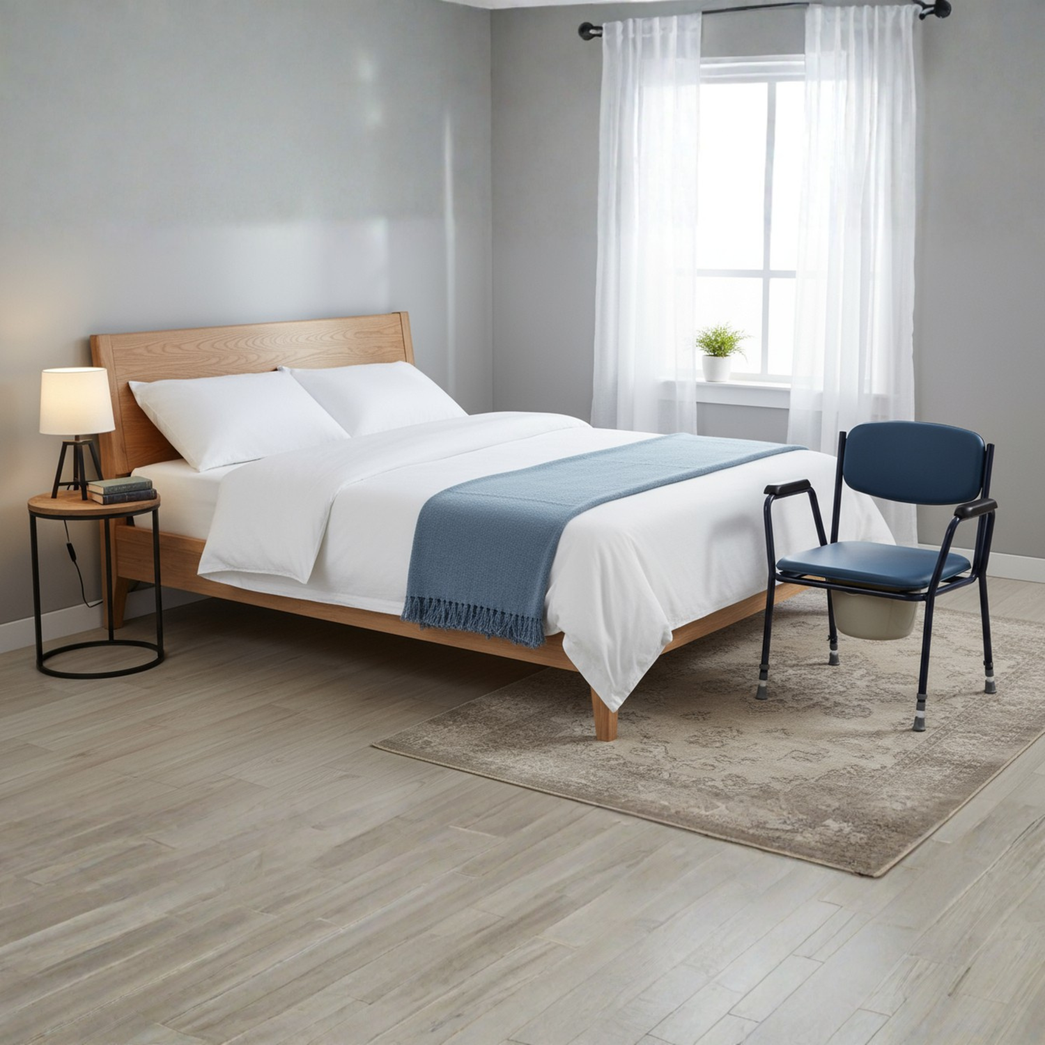 Designed for the bedroom, this commode has a padded seat and backrest ensuring it is both comfortable and good looking.