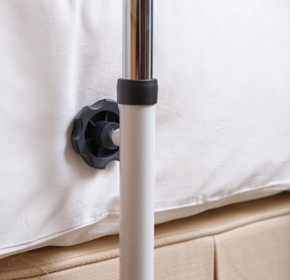 The Divan Overbed Table offers a stable, adjustable surface with a tilting top and raised edge, perfect for eating, reading, or other activities in bed.