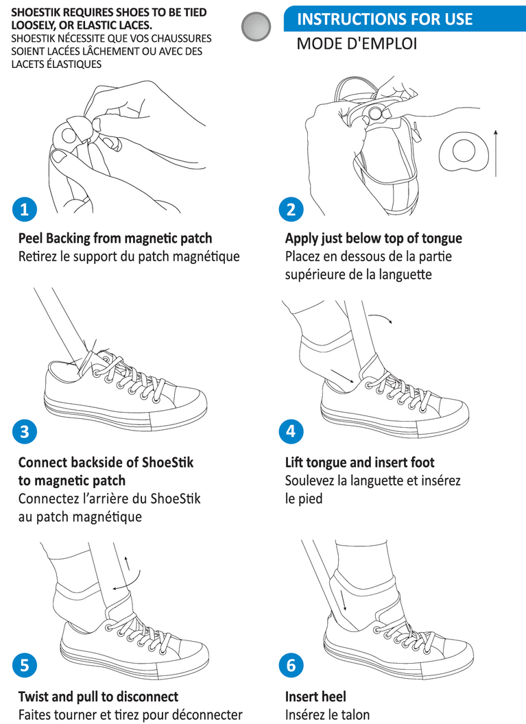 Simply apply the patch inside the heel of each shoe, and your ShoeStik will magnetically connect for fast, hands-free dressing. Whether you’ve got different shoes for different activities or want to equip another person in your household, this spare patch pack keeps everyone ready to go.