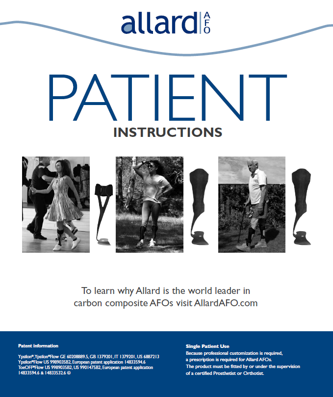 The new FLOW technology offers a smoother transition (flow) throughout the gait cycle and has increased ROM in the sagittal plane. It has been designed for active people who require less resistance or more ROM. Allard has applied its 20+ years of AFO carbon composite experience and advances in technology to create a new proprietary formula to meet the functional and comfort needs of even more individuals.