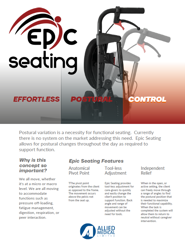 EPiC Seating is a Postural Management System, allowing us to introduce movement into a wheelchair seating environment. The system provides the ability to change positions for function while maintaining control of the pelvis, mitigating the opportunity to introduce shear.