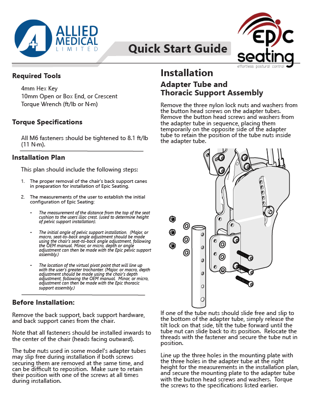 Back Fitting: Compatible with any aftermarket backrest, the Epic Seating System allows for a customizable setup. The system also works with 1-inch back mounting hardware.
