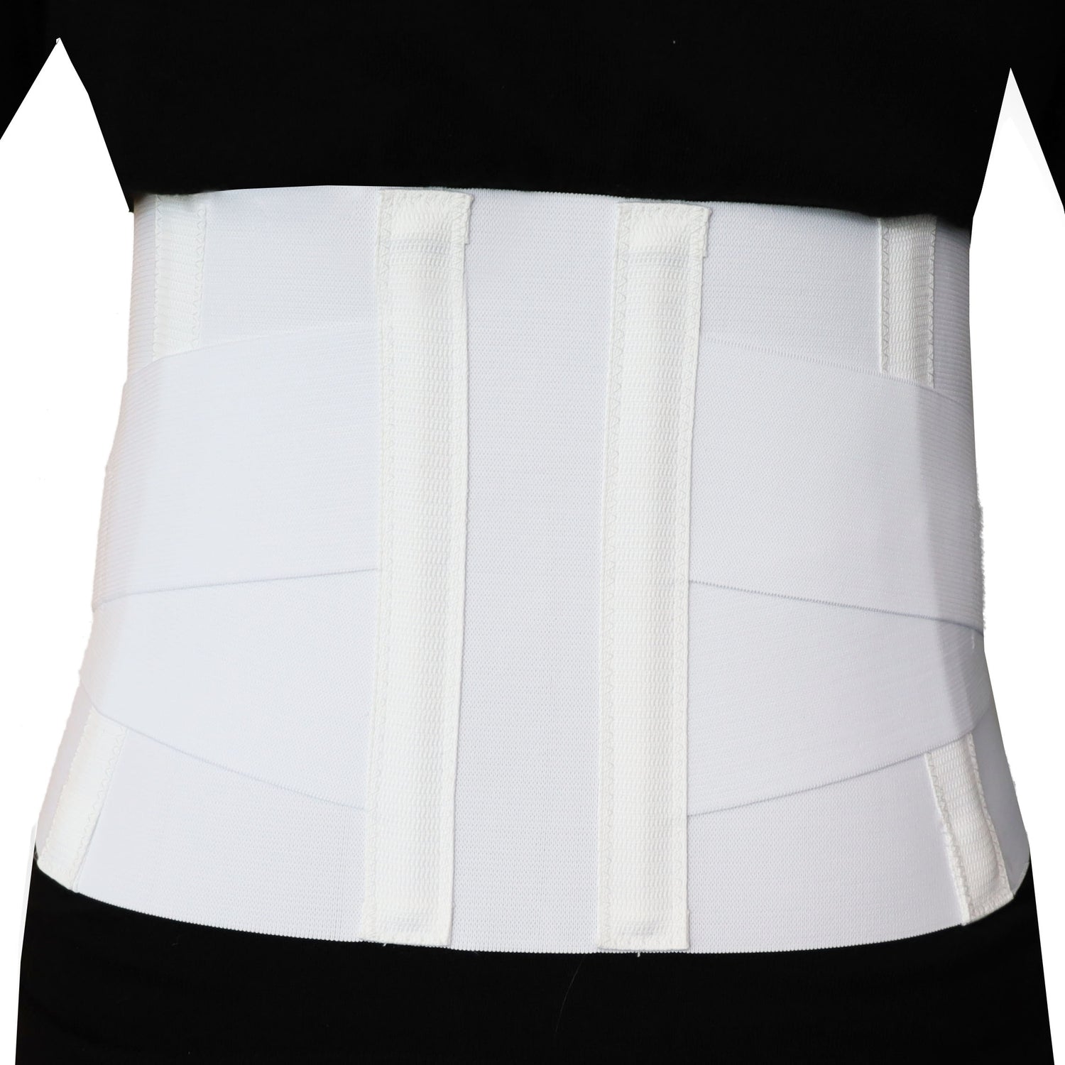 All elastic back support provides excellent abdominal and lumbosacral support. This brace features a 225 mm wide elastic back panel with 75 mm wide elastic duo-tension straps. The 75 mm wide straps extend from the back and stretch to desired tension, then adhere by pressure sensitive Velcro closure to side panels. Front panels are made of elastic - ideal for women and long term use.