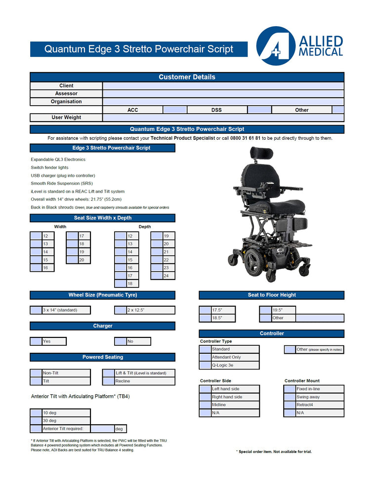 The Edge 3 Stretto offers all the ‘big chair features’ seen in the Quantum Edge 3, including the latest independent SRS (Smooth Ride Suspension), but with the added advantage of a much narrower footprint. Available with TRU-Balance 3 or TRU-Balance 4 Seating Systems.