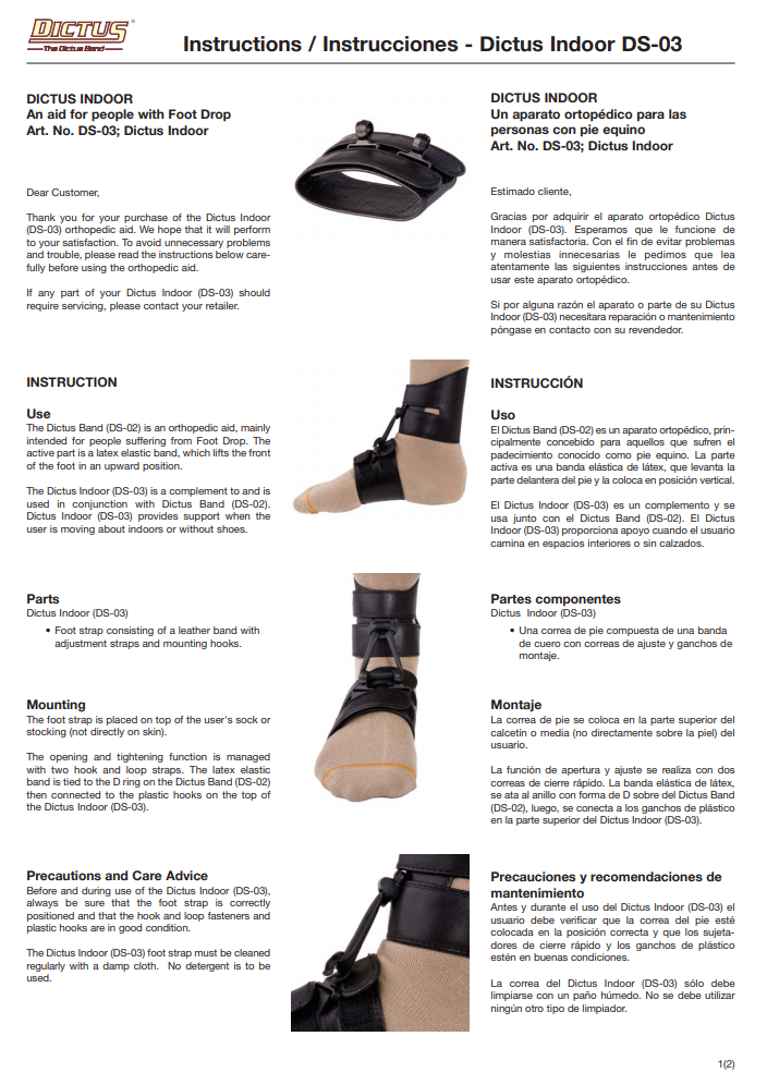 The Dictus Band is an orthosis to help people who suffer from Drop Foot. Drop Foot (or Foot Drop) is a neuromuscular (nerve and muscle) disorder that affects the patient's ability to raise their foot at the ankle.