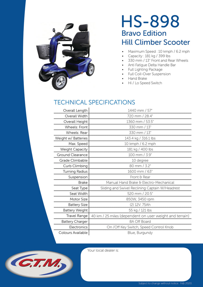 CTM HS-898 Bravo Mobility Scooter