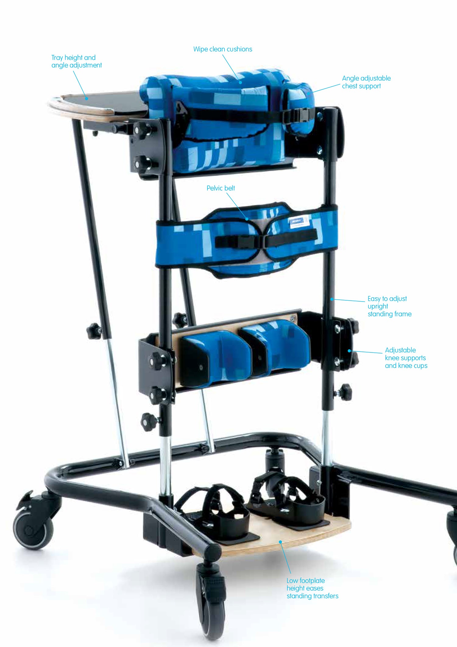 Moving up in size from the Totstander, the Freestander will support children with mild to moderate levels of physical involvement. The stander covers a large growth range and has adjustable chest, hip and knee supports to ensure that it meets a large range of clinical needs.
