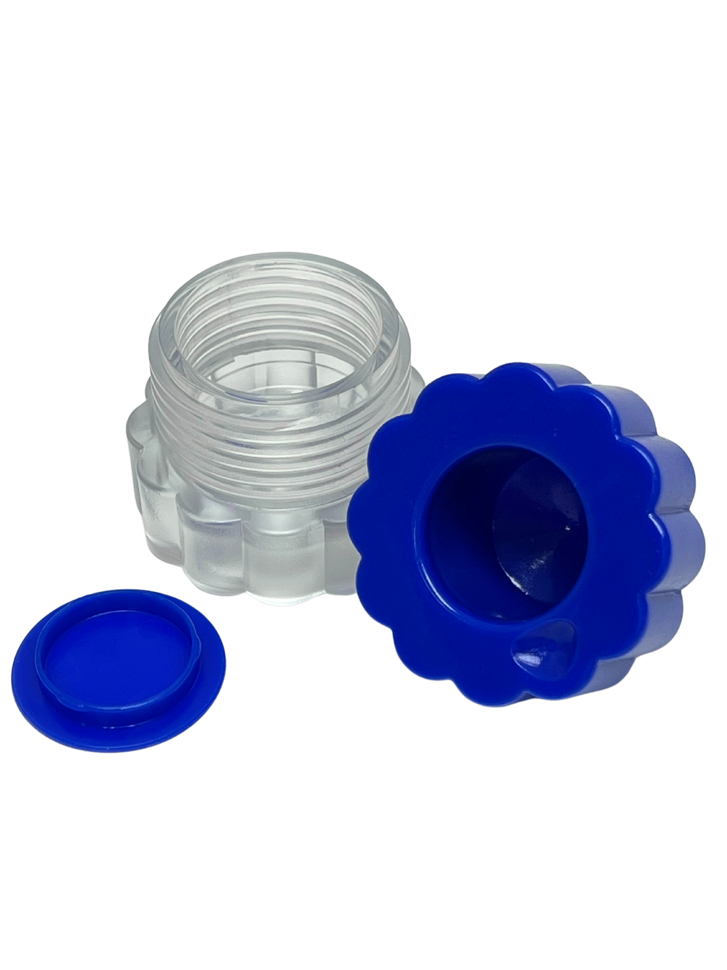 This device works as a grinding mill for medicines. Turn the screw top to crush the tablets into powder. Any spare tablets can be stored in the lid compartment.