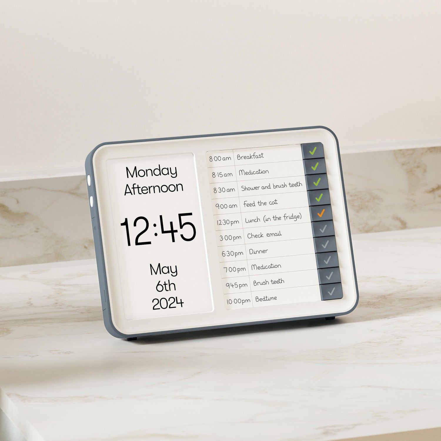 The Day Hub Task Reminder Clock is a simple, low tech solution designed to support independence at home. With personalised daily task reminders and a clear visual record of completed activities, it provides reassurance for users and added peace of mind for carers.