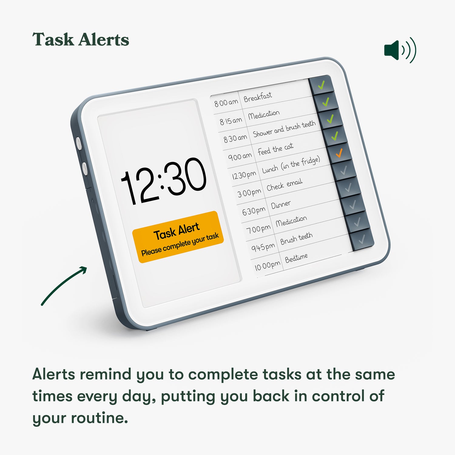 The personalised check list helps maintain ongoing independence at home. All tasks are always visible for reassurance throughout the day.