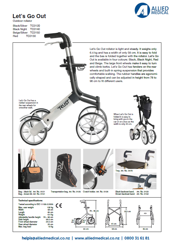 The Backrest Band is a practical accessory that offers extra comfort and support while seated on your TrustCare Rollator. Whether you use the Let’s Fly, Let’s Go Out, or another TrustCare model, this band attaches easily across the handles to provide a secure and comfortable resting surface.
