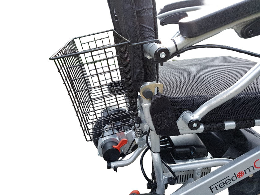 The Freedom Chair Basket adds practical, rear-mounted storage to your Freedom Powerchair without compromising performance or portability. Designed to fit all Freedom Chair models (A06, A07, A10 and DE08), it securely attaches to the backrest and provides ample space for personal items, groceries, or small bags.