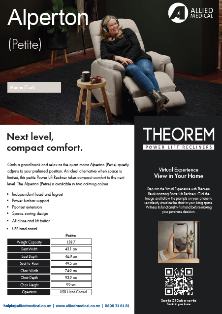 Grab a good book and relax as the dual motor Alperton (Petite) Power Lift Chair quietly adjusts to your preferred position. Perfect for smaller spaces, this compact recliner offers exceptional comfort and functionality without compromising on style. Available in colour Fresh.