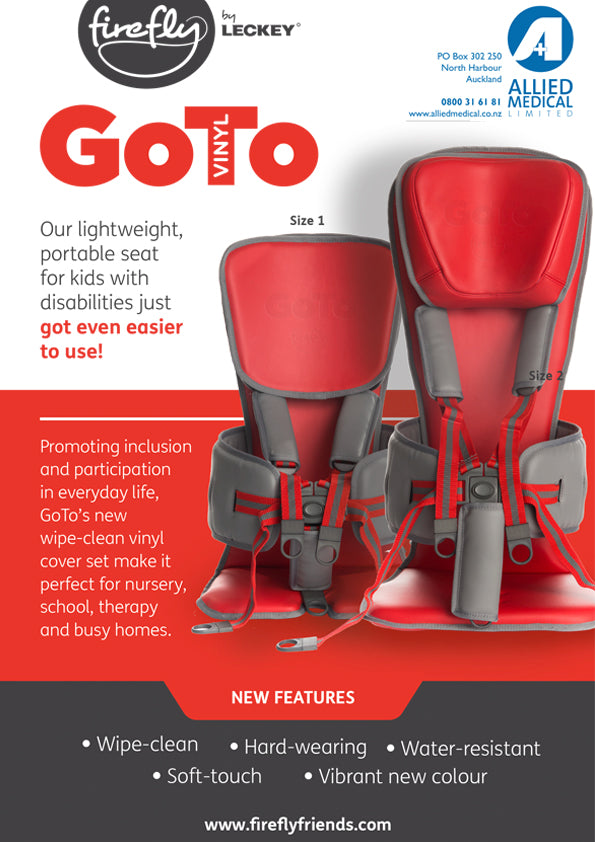 The Firefly GoTo Vinyl Seat is a portable support seat for children with extra postural needs. It can be taken anywhere, which makes getting out and about much easier. The GoTo Vinyl’s wipe-clean cover makes it perfect for nursery, school, therapy and busy homes.