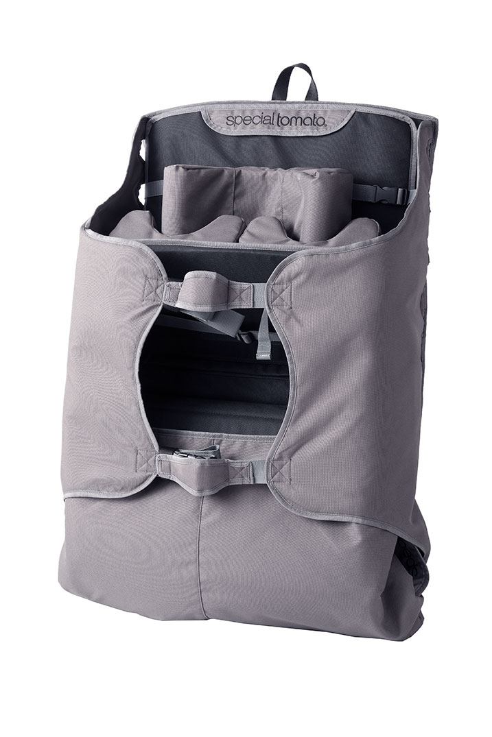 The RSS unit can be used on its own or the Special Tomato Soft-Touch Back Liners and Hip-Flex Seat Cushions and can be integrated into the system. These enhance lateral support and comfort. Hip-Flex Seat Cushions were designed specifically for the RSS system with a "living hinge" to comfortably move with and support the body as it reclines. Soft-Touch Hip-Flex Seat & Back Liner Sizes 2 - 5 fit on the RSS. The Special Tomato Recliner Support System is portable and easy to store. It folds and clips together with a handle to hang it from a coat hook on a wall or the back of a door. The RSS weighs just 4.5kg and is very easy to transport.
