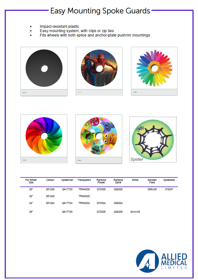 Spoke guards for use on RaceRunners or wheelchairs. With multiple designs to choose from, there is a something to suit everyone! Also available in plain options.