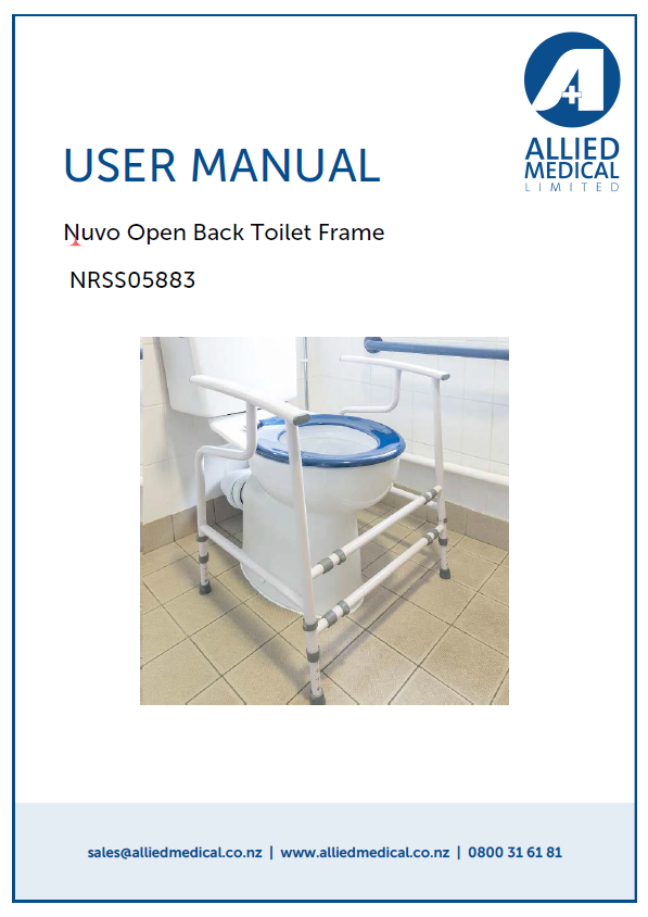The Nuvo Open Back Toilet Frame features a contemporary design with smooth, comfortable armrests and an open back for easier toileting. Adjustable in height and width, this lightweight, powder-coated steel frame suits various needs. Non-slip rubber ferrules ensure extra safety, and it's easy to assemble without tools.