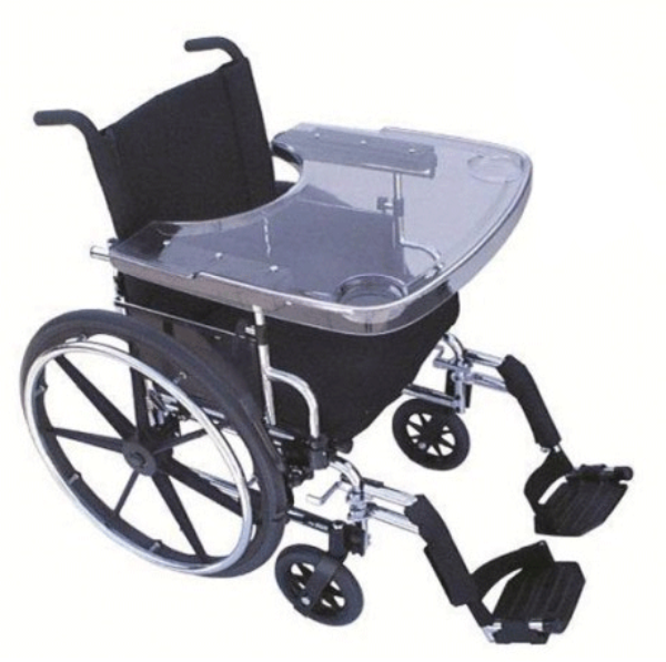 The adjustable slide-on system allows the tray to fit wheelchairs sized between widths of 16" and 18" (400 mm to 450 mm).