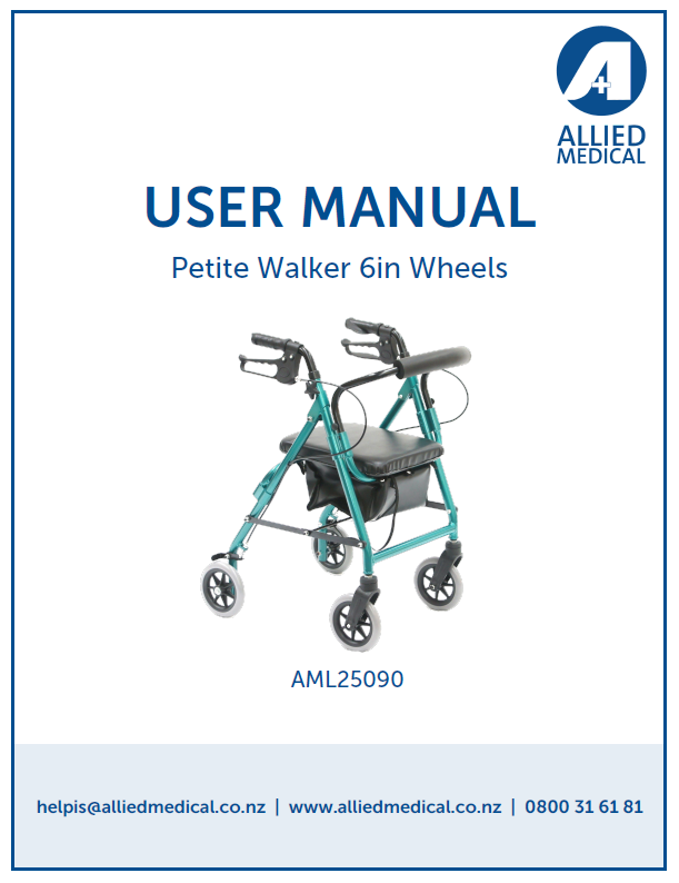 A smaller walker designed for the more petite adult. The four wheels provide both stability and manouverability and allow the rollator to be used both indoors and outdoors.