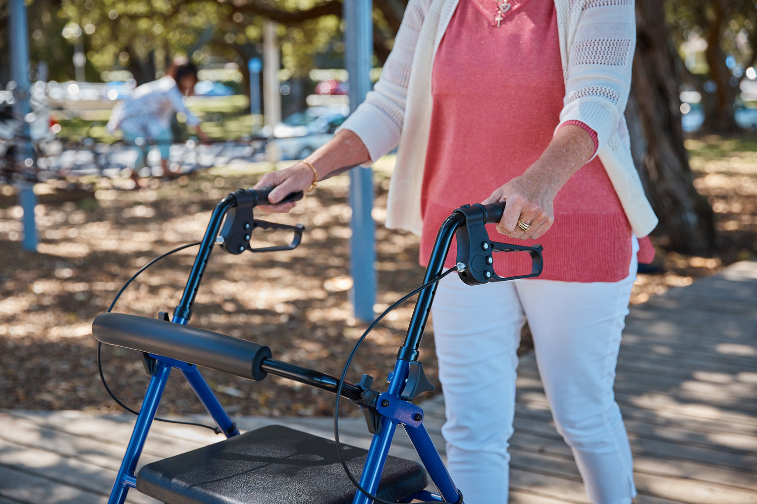 A dependable and lightweight rollator, ideal for both indoor and outdoor use. It features height-adjustable handles, easy-to-use loop brakes, a padded seat with a backrest for resting, and a handy under-seat storage bag. The frame folds for transport and storage, making it practical for day-to-day use and outings.