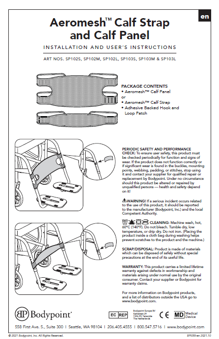 Bodypoint Calf Panel Supports support the lower legs and controls flexion without bruising. Unlike generic supports, the special Velcro®-style closure material will not catch or snag clothing.