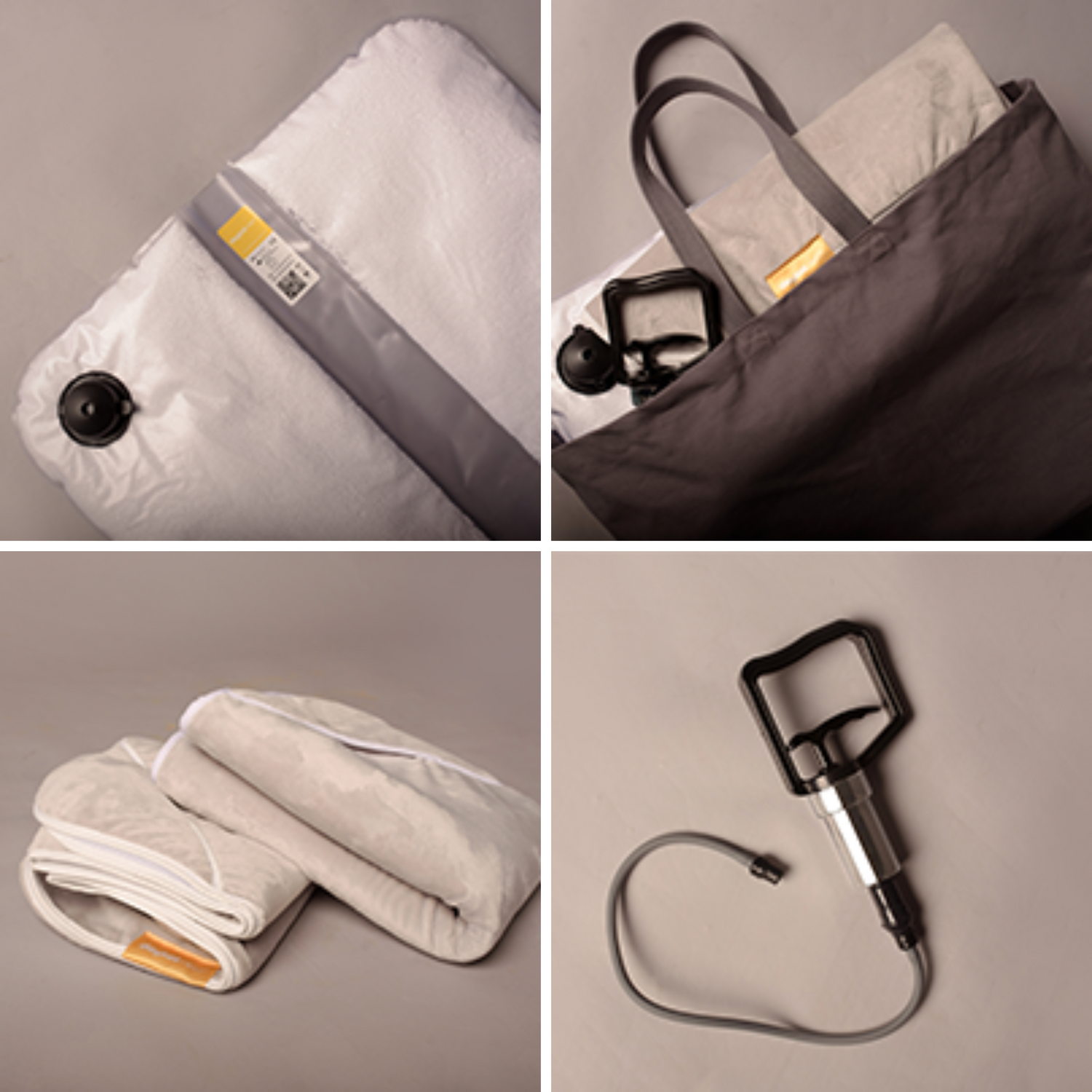 • Hand Pump: Used to remove air from the bean filled base cushion.