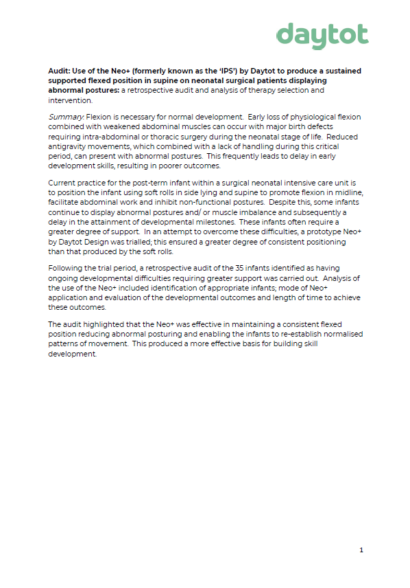 Neo+ is a multipurpose positioning support for infants who have delay in their development and require supportive positioning to strengthen their core, improve their patterns of movement or assist access to their environment.
