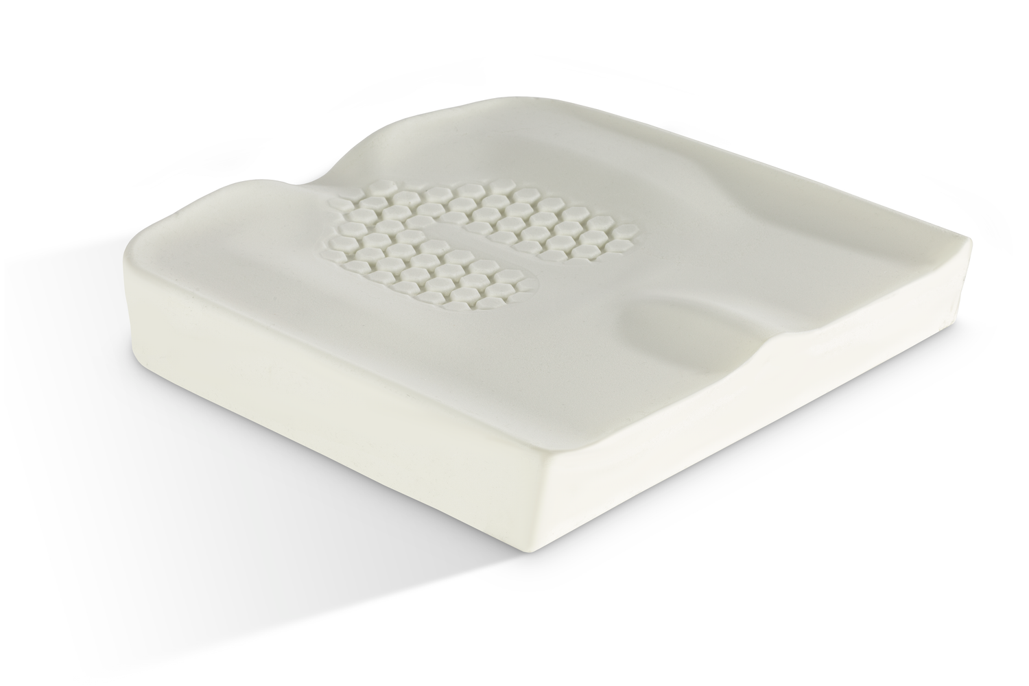- The unique hexagonal foam shapes in the well reduce surface tension and increase envelopment around the ischia and coccyx. By only using one pleated cover, surface tension is reduced, providing better immersion into the well.