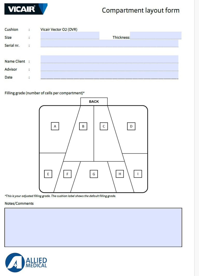 The Vicair Vector O2 10 cm High offers excellent stability, skin protection and comfort for wheelchair users at low to very high risk of pressure injury. Its unique nine compartment layout helps offload the ITs and coccyx while enhancing pelvic stability, thigh positioning and leg guidance. Filled with air-filled SmartCells for optimal pressure redistribution, it supports improved reach and upper body function. The cushion is 100 percent breathable for effective temperature and moisture regulation, ultra light at around 725 g and fully machine washable at 60°C with the SmartCells in place. It is available in a range of widths and depths to suit different seating needs.