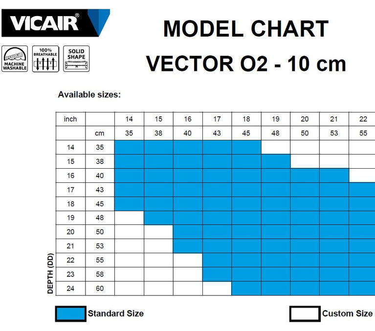 The Vicair Vector O2 10 cm High is a stable, breathable and ultra lightweight wheelchair cushion designed to protect vulnerable areas while improving upper body function. Available in multiple widths and depths, it features nine adjustable compartments and is fully machine washable for easy everyday use.